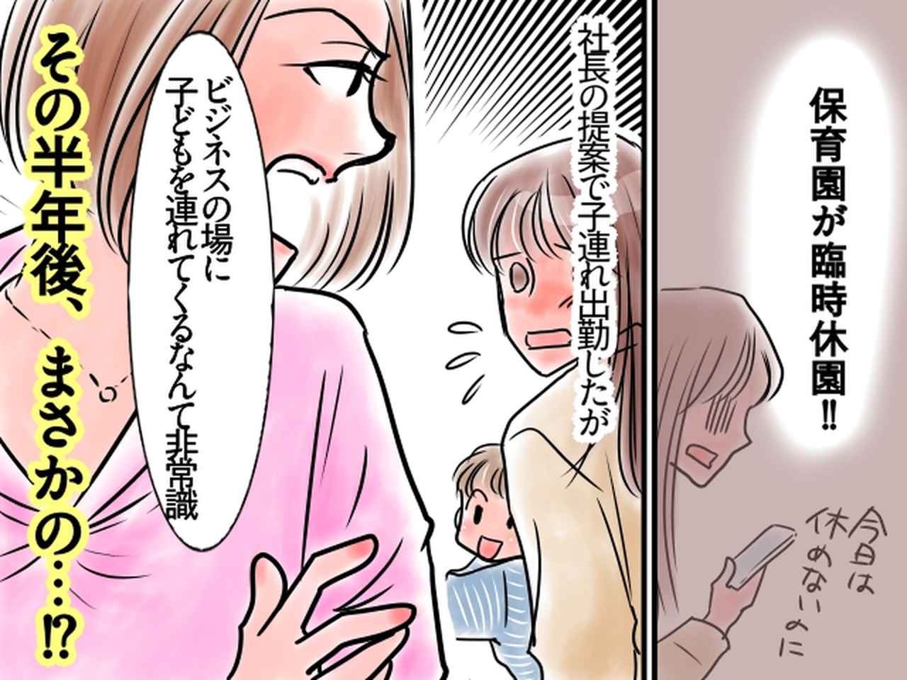 あまりに急で、家族や一時保育所も預かりNG。しかし、私は仕事の都合上どうしても出勤しなければなりません。困り果てて、社長に連絡を取ると「子連れ出勤」を提案していただき、娘と一緒に会社へ行くことに。