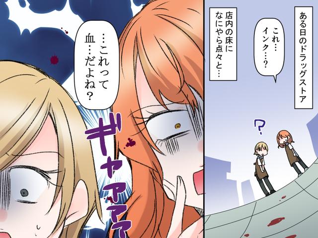 ある日、いつものようにドラッグストアで働いていた私は、店内の床に赤黒いものが点々とついていることに気がつきました。「インクかな?」と思ったのですが、どう見ても血にしか見えません。