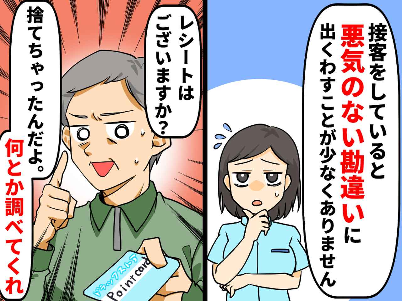 「レジの履歴上、ハブラシは会計されていませんね」と伝えると、「あれ~? 勘違いだったか! 悪い悪い!」と笑いながらそそくさと帰っていきました。時計を見ると、対応を始めてから約40分。「私の時間を返してくれ~」と心の中で叫びながらレジ履歴の担当者名を見ると、“田中さん”ではなく“斎藤さん”でした……。