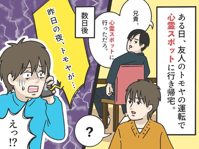 その後、退院したトモヤに会うと、「交差点で急に前が真っ黒になったんだよ。フロントガラス全部が黒いもので覆われたみたいだった」と呟いたのです。遊び半分で行った場所から、気づかぬうちに何かを連れてきたのかもしれません。