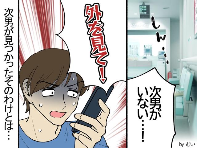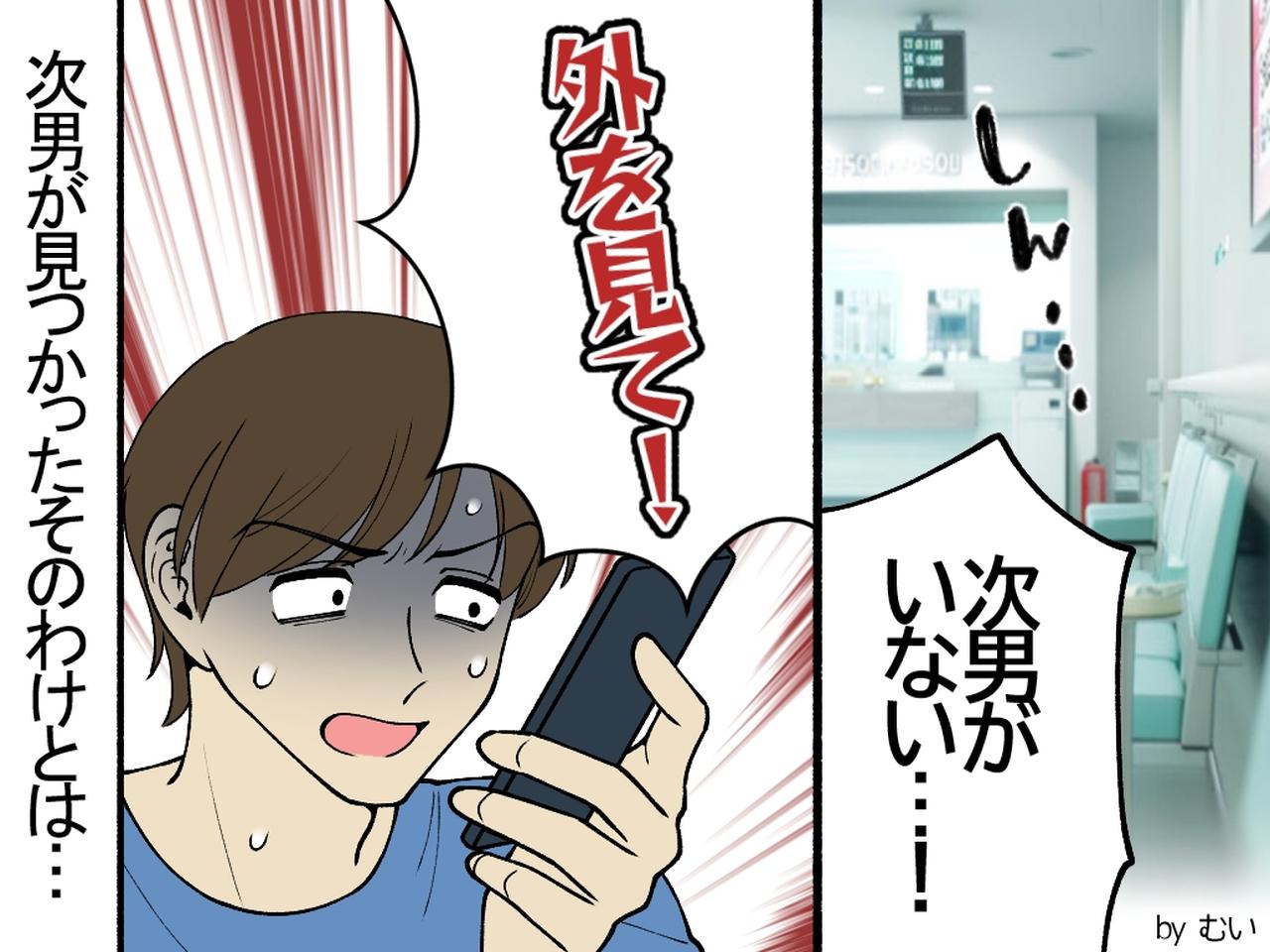 「忘れ物でも取りに来た?」と尋ねると、「ずっと病院の待合室にいるよ」との返事。次男の様子を聞くと、夫は一瞬黙り、「いない」と答えました。時差ぼけと睡眠不足で待合室でうとうとしてしまい、隣にいたはずの次男がいなくなっていたのです。