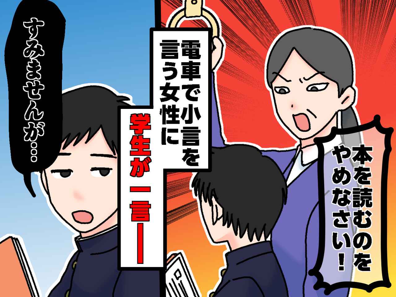 ある朝のこと、その日は彼女の目の前で参考書を読んでいた男子学生が標的になりました。「ちょっと!」女性の鋭い声が響きます。「本を読むと背中が後ろに倒れるでしょう! 本を読むのはやめなさい!」