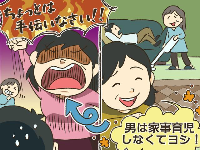 「だからね、外で戦ってる男性に家事や育児をそんなにさせちゃダメよ」と。けれど、私もフルタイム会社員。手がかかる幼児もいて毎日クタクタ……。「そんなこと言われても……」とモヤモヤしながらも聞き流していました。