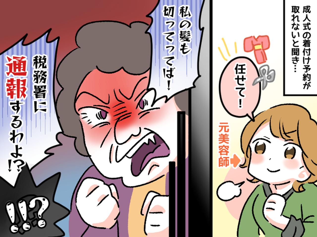 しかし引き下がらず、ついには「成人式の着付けはやったくせに! 税務署に通報してやろうか!」と怒鳴り散らすAさん。もちろん私は無償で行っており、誤解からくる言いがかりでしたが、あまりのしつこさに疲弊し、どうしたらいいのかわからなくなってしまいました。