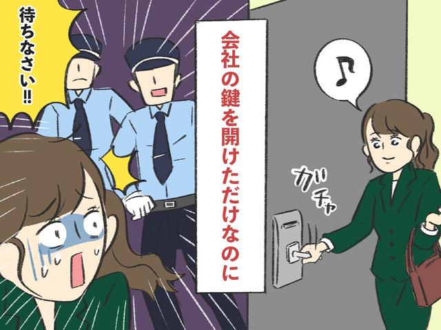 結局、警備会社のスタッフが会社へやって来る事態に。身分証を提示したり、連絡を受けて駆けつけた上司が会社との関係性を証明してくれたりして事なきを得ました。