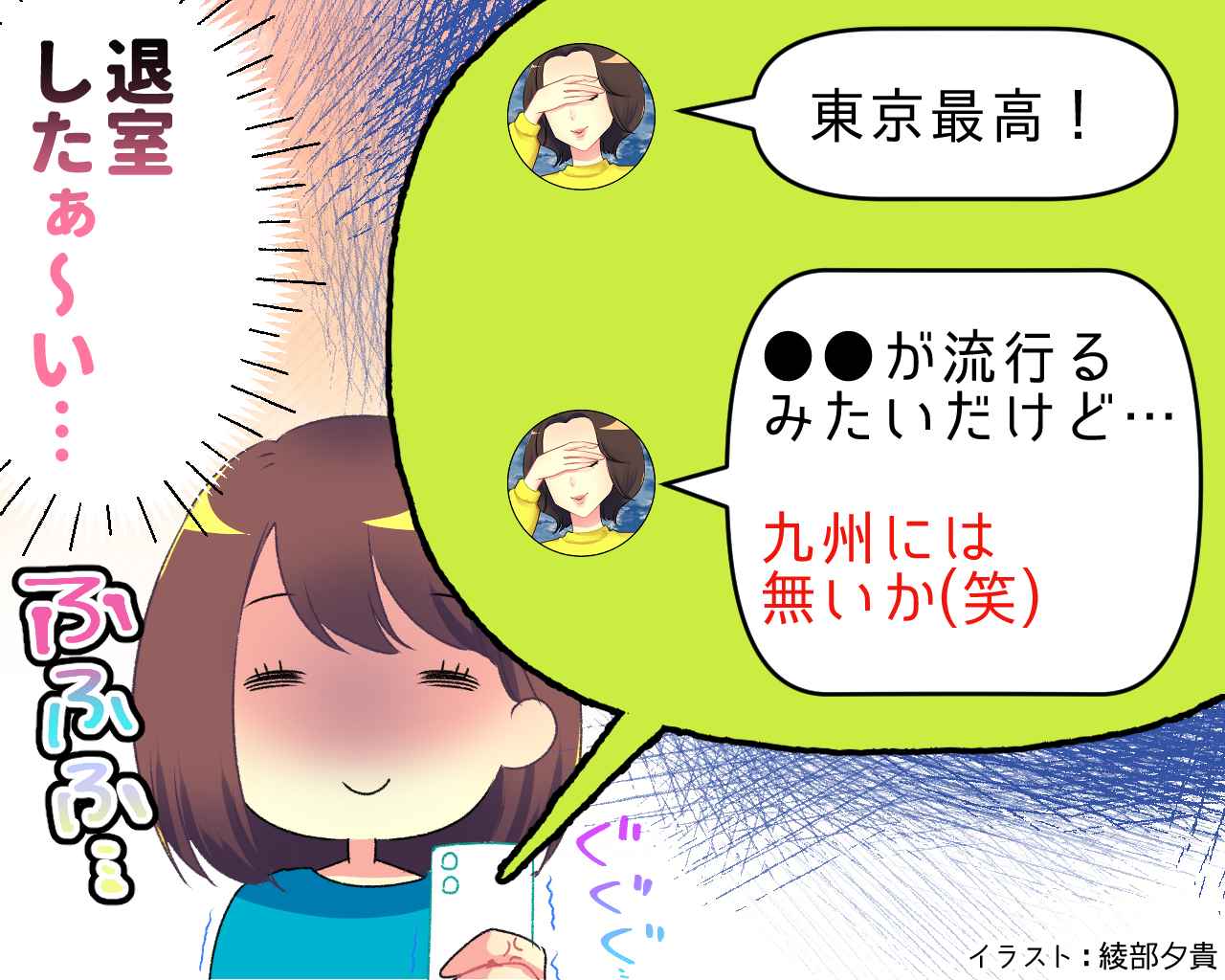 やがて谷口さんは夫の転勤で都内に引っ越しますが、状況は変わりません。「やっぱ東京最高」「九州にはこんなオシャレなもの無いか(笑)」といったメッセージが24時間届き続けます。