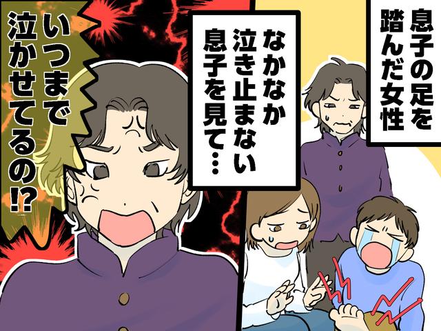 その拍子に、隣にいた50代くらいの女性がよろけて息子の上に倒れ込み、女性の硬い革靴のかかとで息子の小さな足を思い切り踏みつけたのです。女性はすぐに「すみません」と言いましたが、息子は顔を真っ赤にして泣き出してしまいました。なんとか泣き止ませようとなだめても、いっこうに泣き止みません。