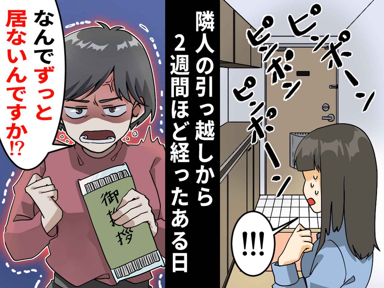 「挨拶もしない失礼な奴だと思っただろ! でもこっちは毎日来てたんだ!」とすさまじい剣幕でまくし立てる隣人。私は「そんなこと微塵も思っていません。ご丁寧にありがとうございます」と震える声で応じました。