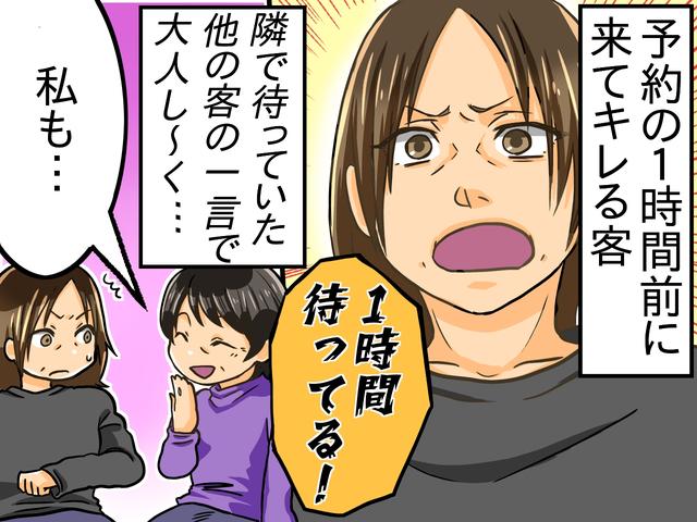そして突然、「もう1時間近く待ってる! ここは毎回待たせるわね!」と、不満が爆発。私は内心戸惑いながら、「すみません、ご予約は14時からですので、もう少しお待ちください」と、同じ説明を繰り返しました。