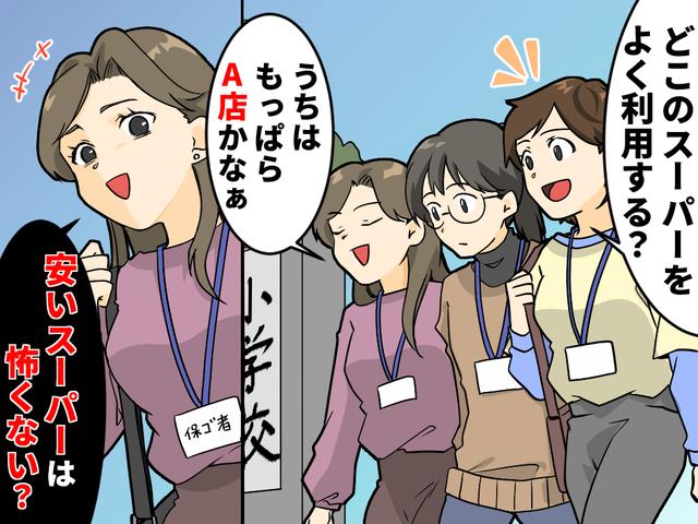「何の話をしていたの?」と聞いてくる井口さんに、「どこのスーパーをよく利用するかって話ですよ」と答えました。すると彼女はこんなふうに会話を続けてきます。「よく行くスーパー? うちはもっぱらA店かなあ。家から一番近いのはB店なんだけど……なんか安すぎて怖くない? 品質、大丈夫なのかなって」