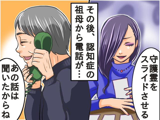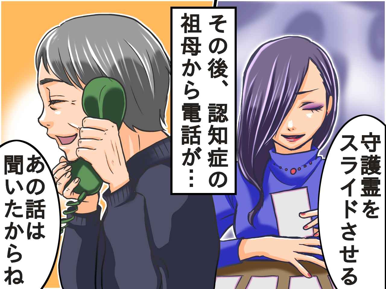 「あ、〇〇ちゃん? おばあちゃんだけど。心配しないで大丈夫よ、あの話は聞いたからね」と意味深な言葉を残し、電話は切れました。