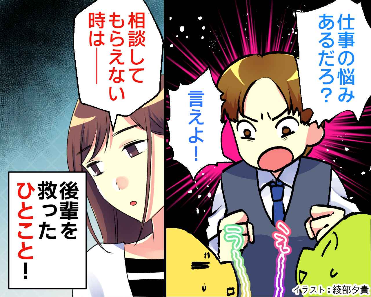また、彼は「後輩に頼られたい」とは強く思っており、後輩たちに「仕事の悩み、なんかあんだろ? 順風満帆なわけねぇだろ?」「言えよ! 言えないような悩みなのかよ!」と詰め寄ります。彼に相談したい人など皆無で、場は重苦しい沈黙に。