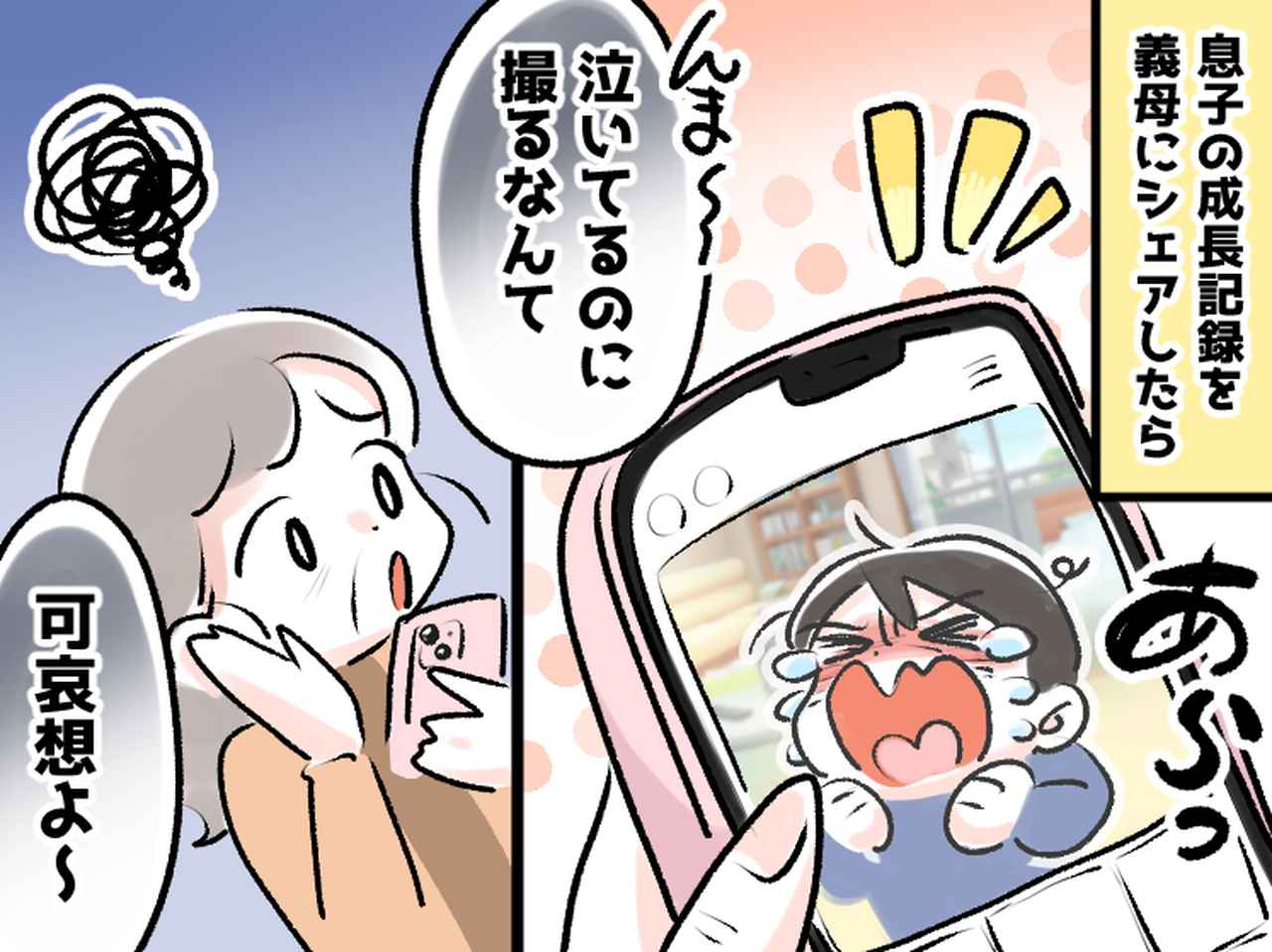 ところがある日、その動画を見た義母から「泣いてるの撮るなんて、可哀想よ〜!」と言われてしまい、その後、ときどき義母の言葉が頭をよぎるようになりました。