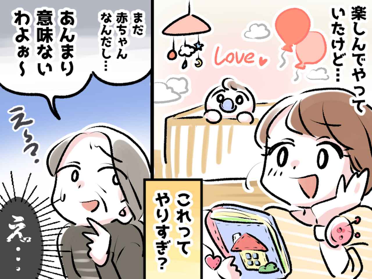 そんな様子を見た義母から、「まだ赤ちゃんなんだから、あんまりやっても意味ないんじゃない?」「頑張りすぎよ〜! そんなに頑張らなくていいよ!」「私、そんなことしたことない!」と言われました。