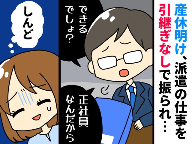 私は産休から復帰し、以前所属していた部署に戻ることになりました。復帰直後、仕事を教えてくれたのは派遣社員のあつこさん(仮名)でした。あつこさんはいつもニコニコしていて、周囲から頼られる愛されキャラの存在です。実は産休に入る前、私は自分の担当業務をあつこさんへ引き継いでいました。