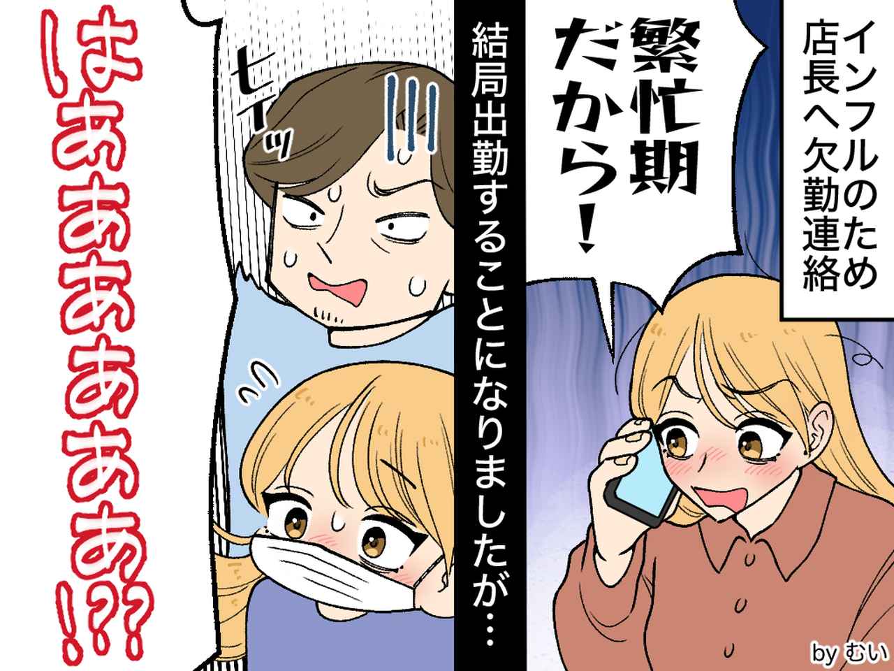 職場に連絡し、インフルにかかったため休みたいと伝えましたが、店長から返ってきたのは「繁忙期だからな!」という一言でした。体調や妊娠への配慮よりも、忙しさを優先されたように感じました。