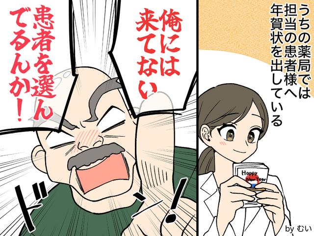ある日、いつものように受付に立っていると、常連の70代男性・山本さん(仮名)がスタスタとカウンターへやってきました。何やら怒っている様子で、私と目が合うなり「知り合いが薬局から年賀状来たって言いよったけど、俺には来てない!」「患者を選んで送っとるんか!」と、強い口調で言ったのです。