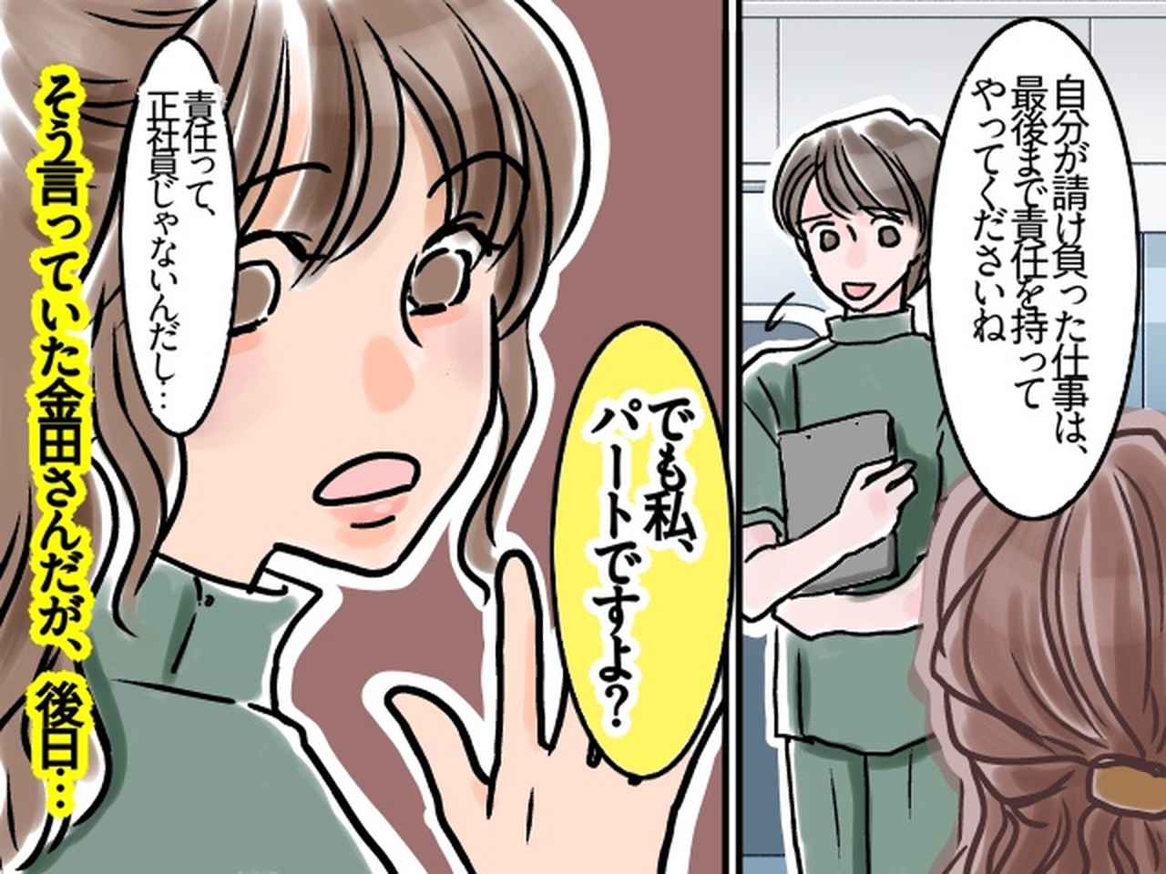 すると金田さんは、「でも私、パートですよ!?」「責任って、正社員じゃないんだし……」と、思いがけない言葉を返してきたのです。