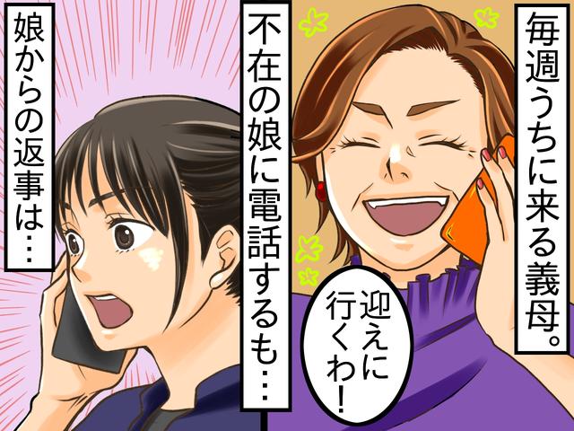 思わず「娘にも予定があると思いますし、迎えに行かなくて大丈夫ですよ」と伝えましたが、いったん決めたら止まらない義母。娘のスマホに電話をかけ、「今から迎えに行くから!」と言います。娘が「まだ買い物したいし大丈夫。歩いて帰るよ」と答えても、「顔が見たいんだもん〜今から行くね!」と遮るように返答。