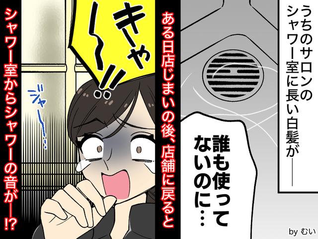 店長が月に一度、その物置兼シャワー室を掃除・点検していたある日のこと。そこで長い白い髪の毛を発見。スタッフにもお客様にも白髪ロングの人はいないため、不気味に感じつつ「荷物についてきたのかな」と深く考えないようにしました。
