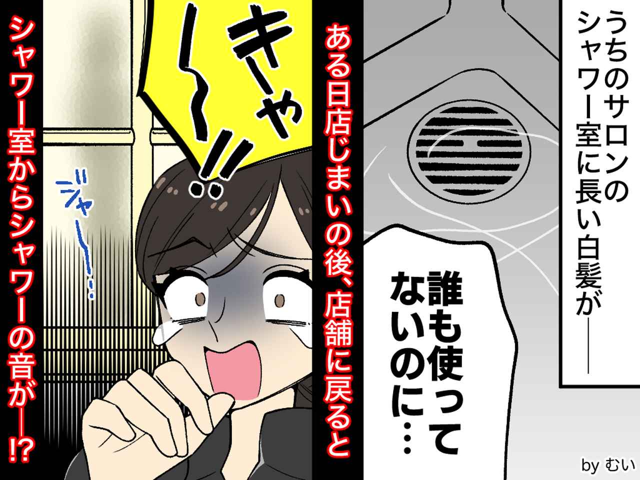 ある晩の事。閉店後に忘れ物を取りに戻った店長は、誰もいないはずの店内から水音を聞きました。しかも音の出どころはシャワー室。泥棒か幽霊か判断がつかない店長は、意を決して消火器を持ってドアを開けました。そこにはスタッフの姿が。手には白髪ロングのカツラが握られています。