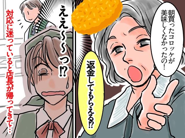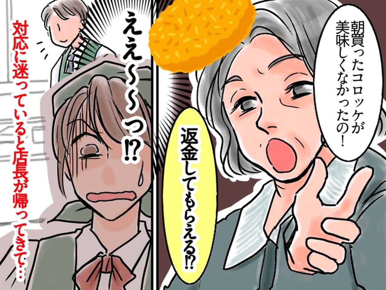 ある日の午後のことです。60代くらいの女性が、早足でカウンターへやってきました。表情は明らかに不機嫌です。そして私と目が合うなり「朝買ったコロッケがおいしくなかったの!」「返金してもらえる!?」と。