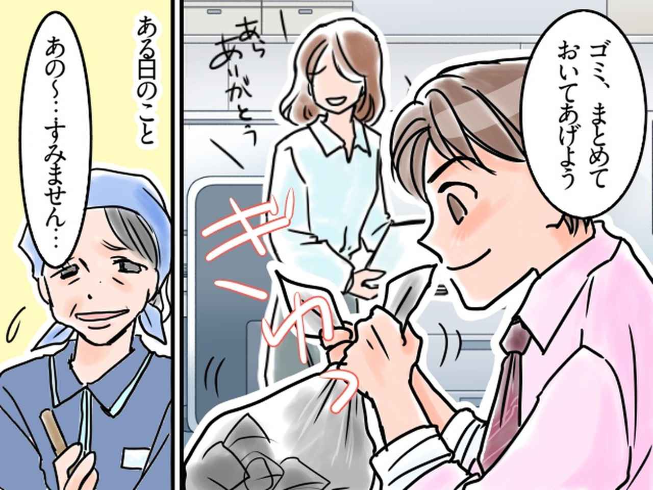 清掃スタッフの女性は、後輩がいつものように固く縛ったゴミ袋を指差しながら、控えめな口調でこう切り出しました。