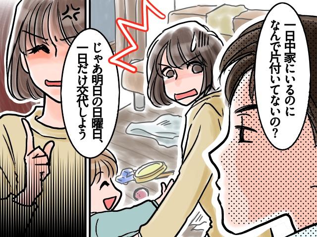 カチンときた私が「子どもの世話から目が離せなくて、片付ける暇なんて全くないの!」と必死に言い返すと、夫は「俺の仕事のほうが疲れるし大変だよ」と見下すようなマウントをとってきました。