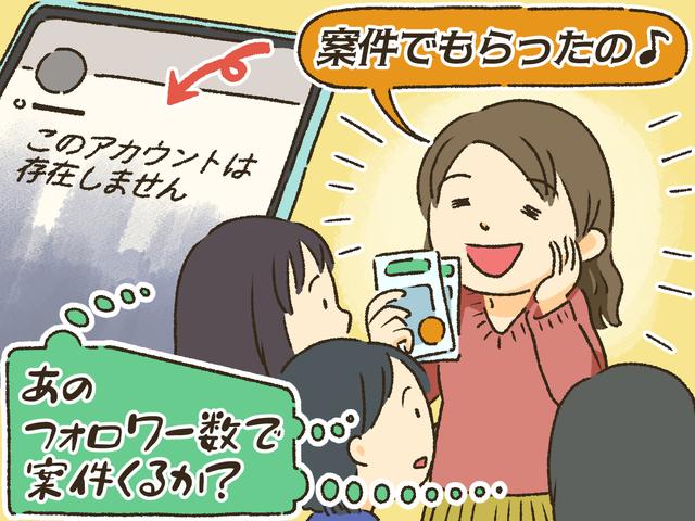 「そのフォロワー数で案件来る?」と皆が不思議に思いながらも、断るのも面倒で受け取っていました。やがてBのSNSは案件めいた投稿ばかりに。