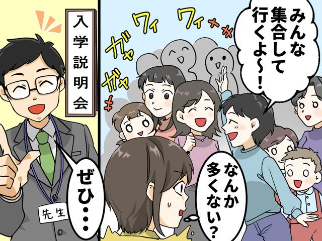 私の知人・美帆さん(仮名)は、娘が小学校へ入学するため説明会に出席することになりました。ママ友から「一緒に行こう」と言われ快諾しましたが、なんと『幼稚園の親子みんな』で行くことになってしまい……ところが、受付の先生のひとことで、その場にいた全員が考えさせられました。