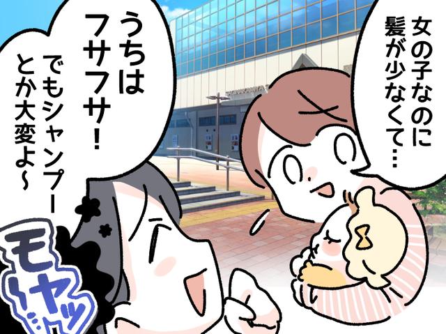 育児の悩みを話すたび、毎回全部を自分の子どもの話にすり替えるママ友がいました。「女の子なのに髪が少なくてよく男の子に間違えられる」と話すと、「うちは生まれたときからフサフサで、シャンプーが大変だった。少なくて羨ましい」と返ってくる。