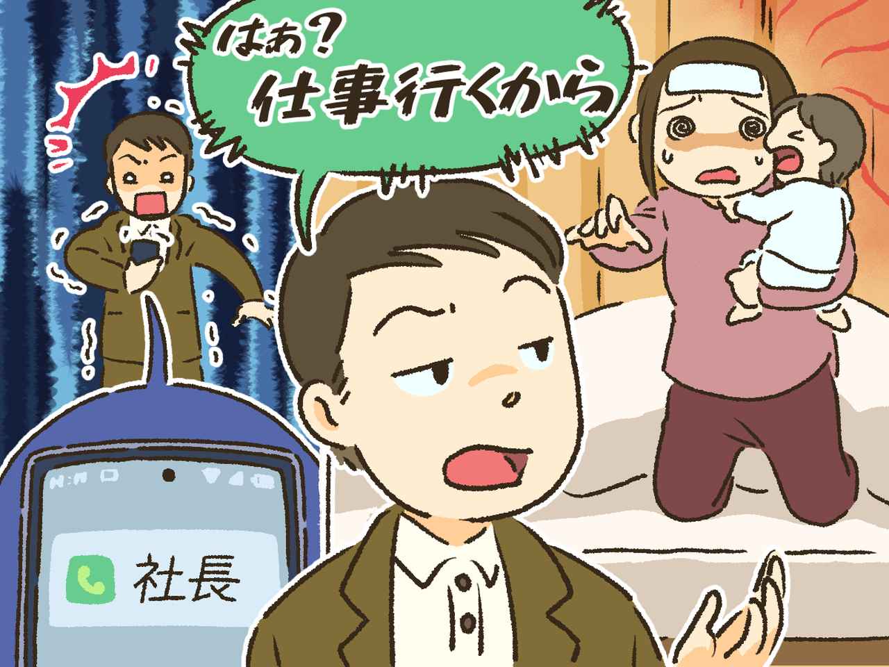 電話口で社長は「熱で倒れている妻と赤ん坊を置いて仕事に来るような奴に、大事な仕事は任せられん! 今すぐ有休を取って、奥さんを病院に連れて行け!」と大激怒。