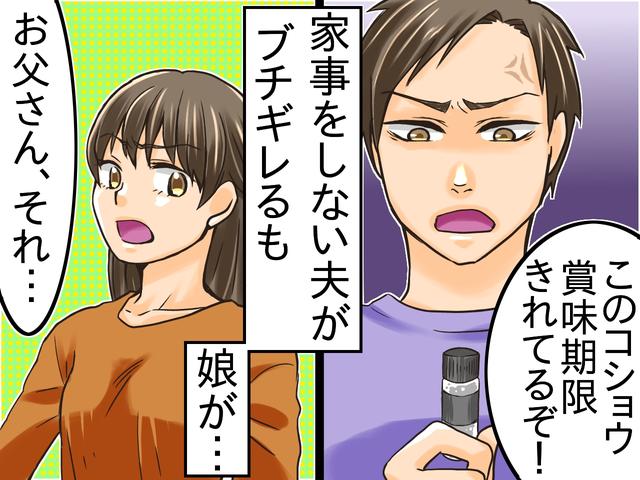 「なんでも人任せにしてないで、もうちょっと家のこと気にしたら?」娘の正論に、夫はぐうの音も出ません。感情にまかせた怒りはどこかに吹き飛んでしまったようです。家族の誰よりも肩身が狭そうな様子でした。