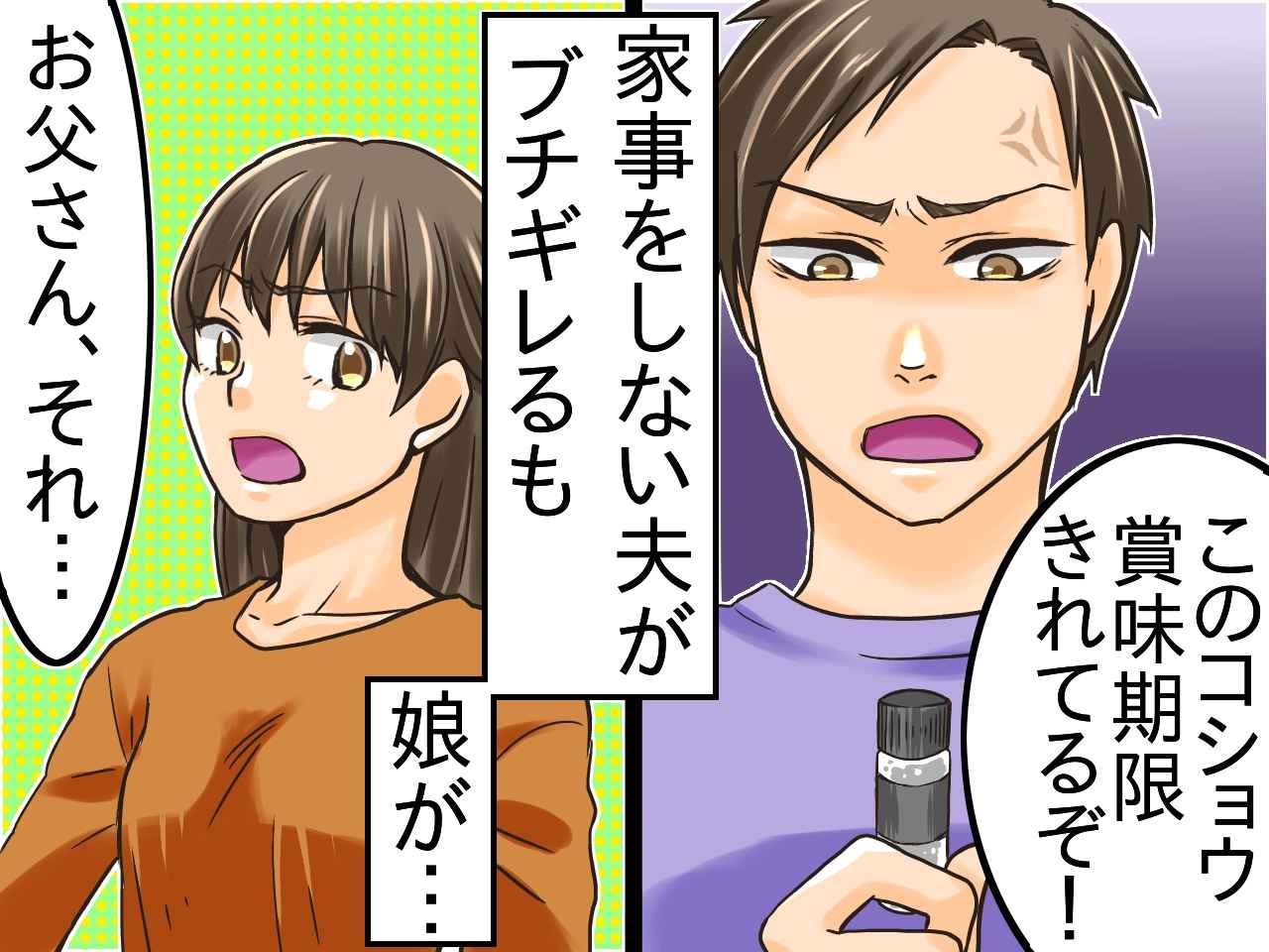 夫が怒り狂う様子を、ポカンとした表情で見つめ返したのは子どもたちでした。気まずい空気のなか、中学生の娘が夫に真実を告げます。「それ、中身だけ入れ替えてるんだよ。お父さん……もしかして知らなかったの?」
