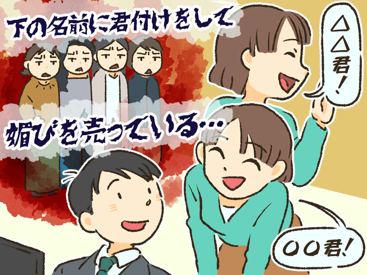 私の勤める会社には、Sという社員がいます。忘年会や打ち上げなど飲み会の場になると、彼女は必ず男性社員の下の名前を聞き出し、それ以降「〇〇君」と呼ぶのです。
