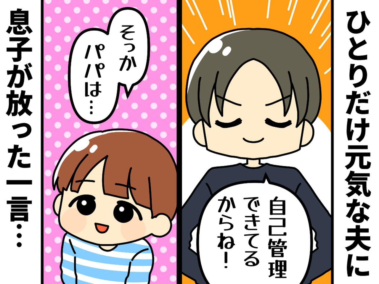 結局1人だけインフルにかからなかった夫。数日後に長男が言いました。「パパだけインフルかからなかったね」すると夫はドヤ顔でこう言ったのです。「自己管理ができてるからね」