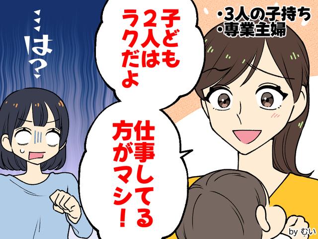 会うたびに「2人ならラクだよね」「仕事してると気分転換になるでしょ」「外に出られるだけま羨ましいな」など、こちらの生活を軽く見るような発言があり、正直少しモヤモヤ。