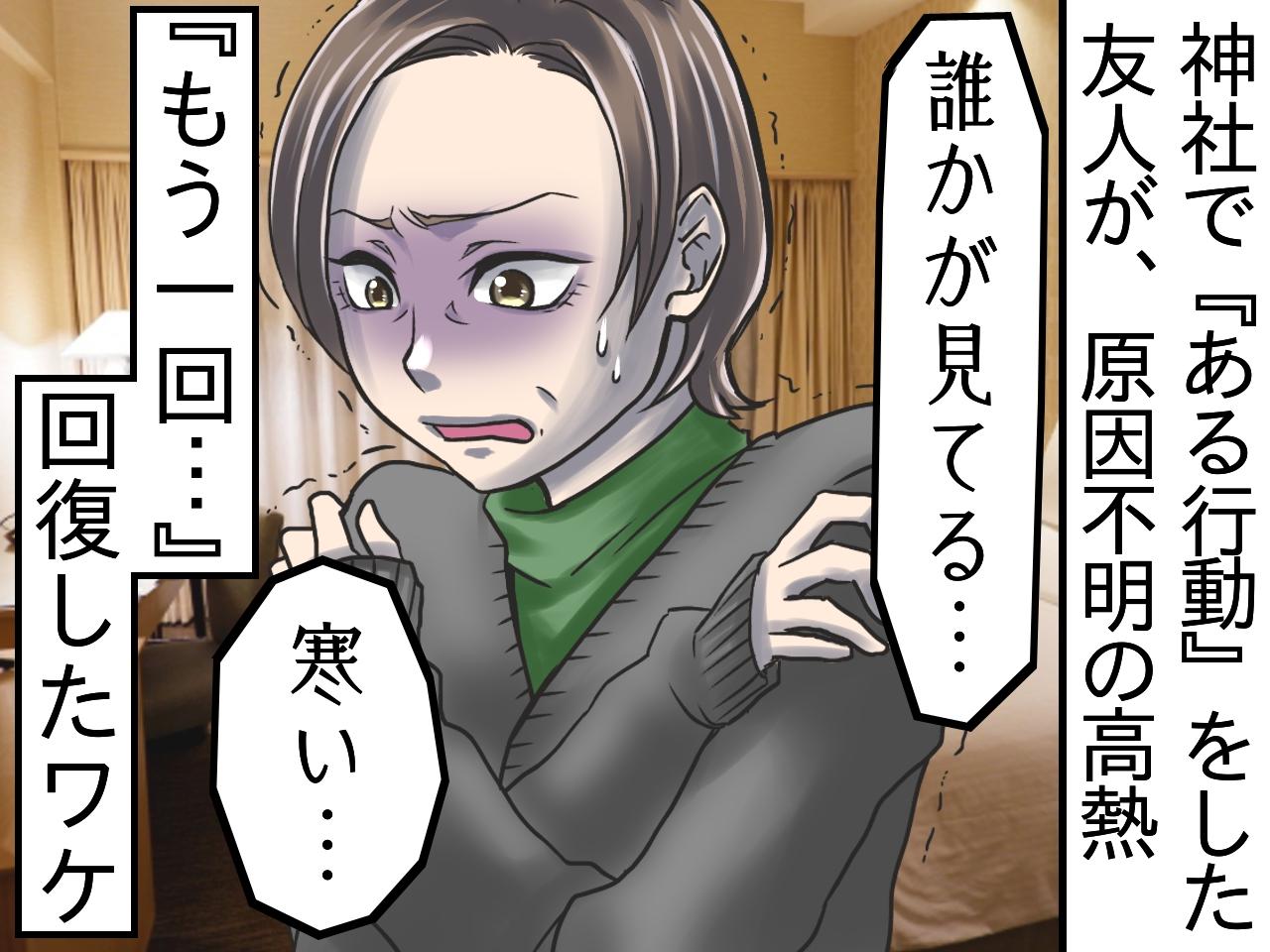 翌日になっても友人の体調は戻らず、そのまま帰宅することになりました。後日届いたLINEには、微熱と倦怠感が続いていると書かれていました。あの神社での出来事が頭から離れず、私もどこか引っかかりを感じていました。