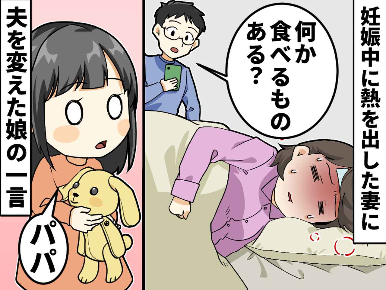 そんな中、私は子どもから風邪をもらい、高熱で寝込むことに……。しかも、お腹には第二子がいる状態でした。そんな私をよそに、夫はリビングでスマホゲームに夢中。