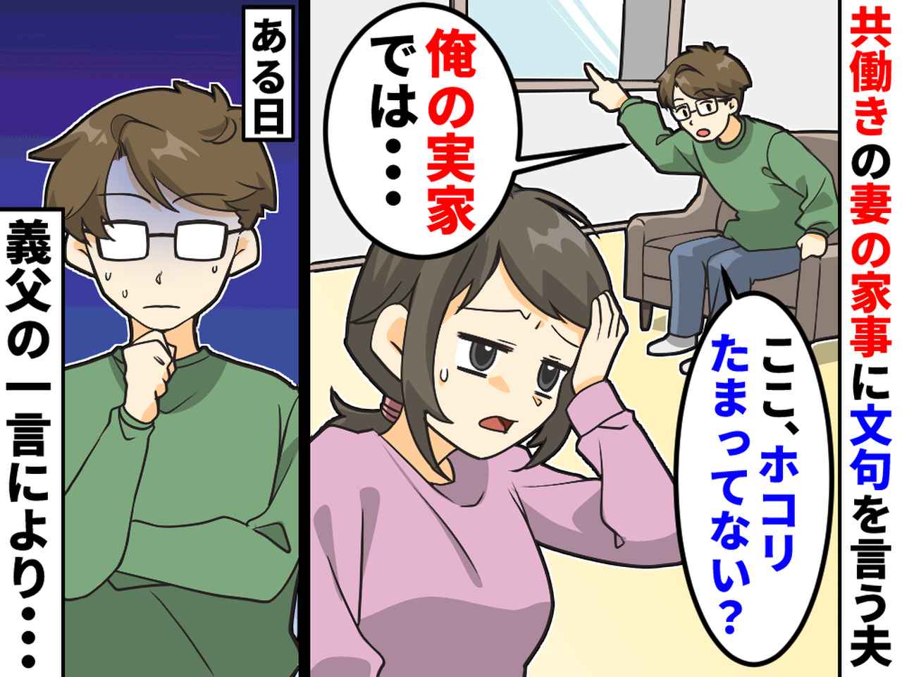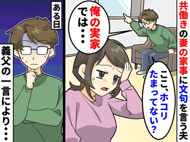 「ここ、ホコリたまってない?」「今日のご飯、これだけ?」など共働きで毎日バタバタなのに、そんな一言を平気で口にする夫。さらに決まり文句のように続くのが、「俺の実家ではもっとちゃんとしてたよ」という比較でした。