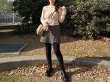 オフホワイトのモヘアニットとジャガードスカートを合わせたオールホワイトコーデ。ベージュの編み上げヒールブーツを合わせて、爪先までフェミニンなスタイルの完成です。