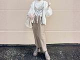 カラーニットと合わせて、華やかに♡ 春らしい色味が、ドットの甘さを引き立てて、大人可愛いスタイルに仕上がります。