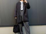シャツの上ボタンを2つほど外し、あとは留めて着用! 抜き襟にして着こなすと、大人な雰囲気が漂いこなれた印象に。