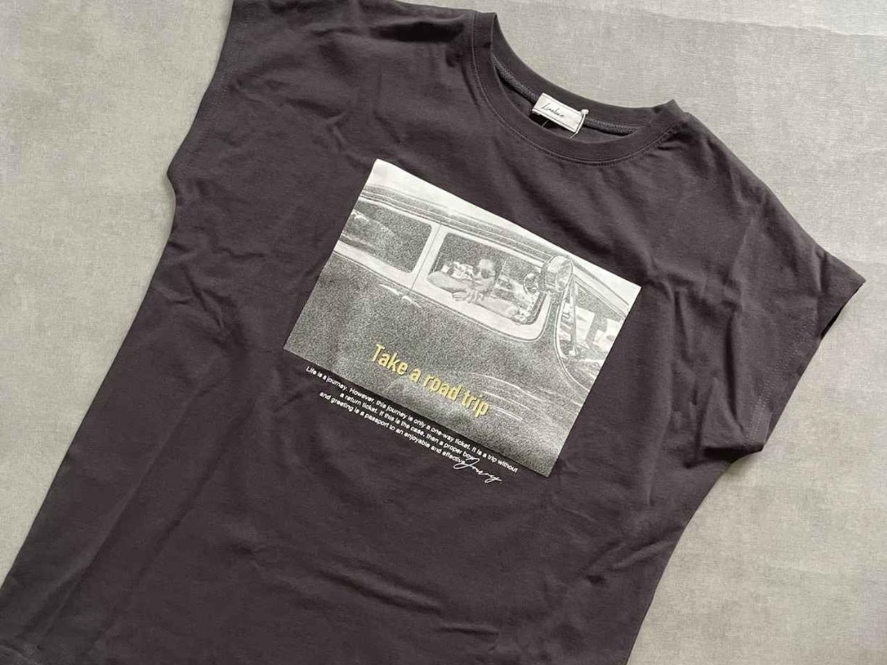 発見したのはこちらのTシャツ。落ち着いたチャコールグレーに大人っぽいフォトプリントが可愛い1枚。