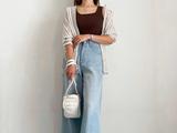 シアー素材のインナーを合わせて残暑にも楽しめる秋スタイルに。ハイウエストのボトムスに合わせればスタイルアップも狙えます。