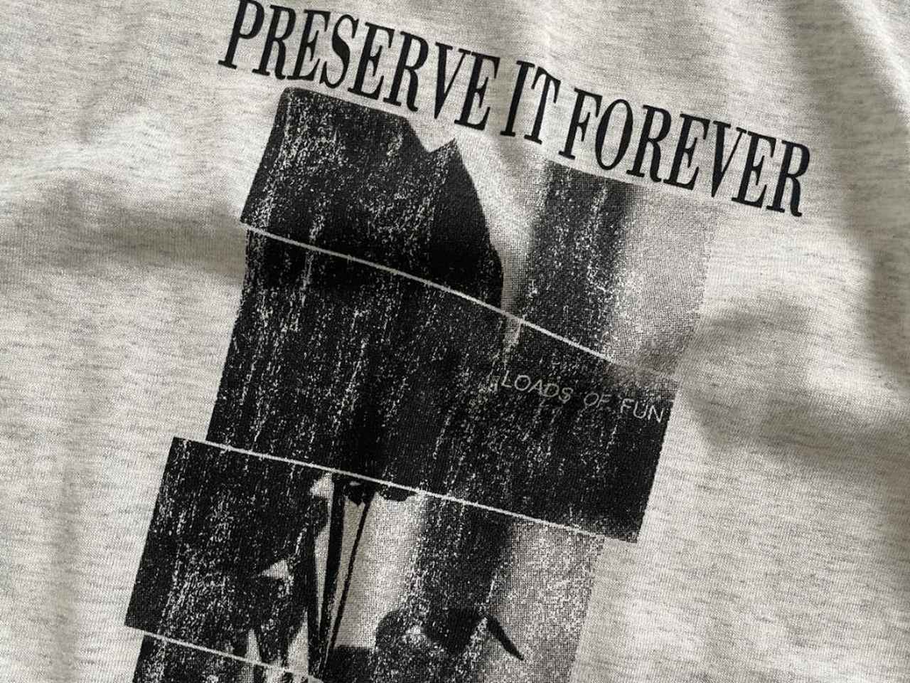 大人見えするロゴの組み合わせに、コラージュデザインのフォトプリント。かすれたような質感がほどよくヴィンテージ感を演出してくれます。