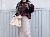小花刺繍が施されたベロアスカートは、クラシカルで大人可愛い雰囲気。