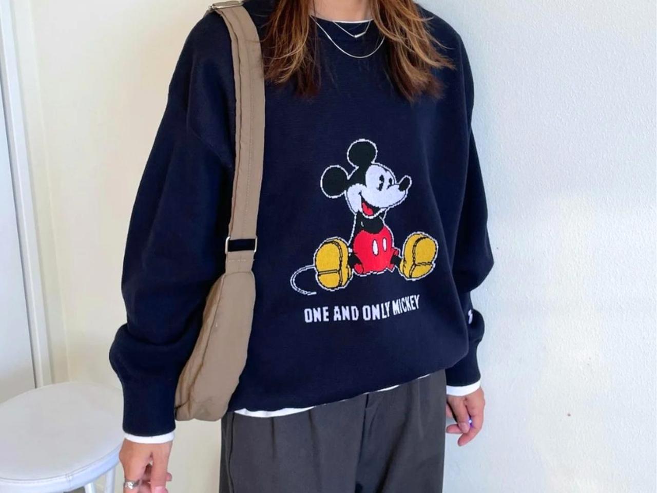 ヴィンテージライクなミッキーが大人可愛いニットを発見! 全部ジャガードで表現された絵柄が高見えです。