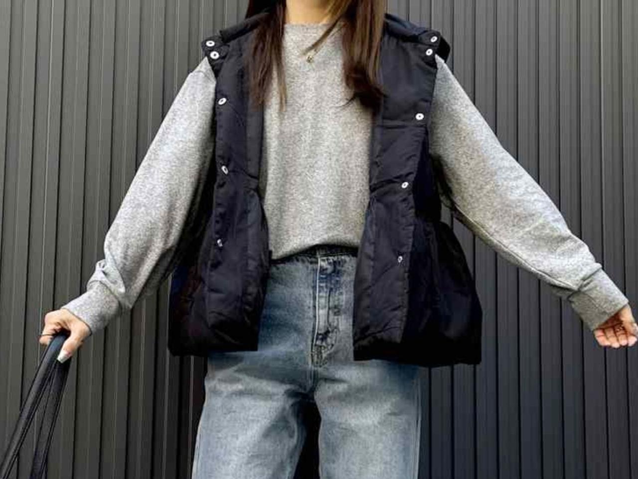 デニムにベストを合わせました。カジュアルなトップスとボトムスですが、ペプラムのベストにパンプスを合わせることで、女性らしくなりますね♪ シンプルコーデの格上げです♡