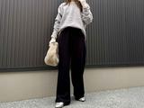 大人っぽくまとめたいなら、スラックス合わせがベスト♡ カーディガンと同色のインナーを合わせて統一感を出すと、まとまりよく着映えます。